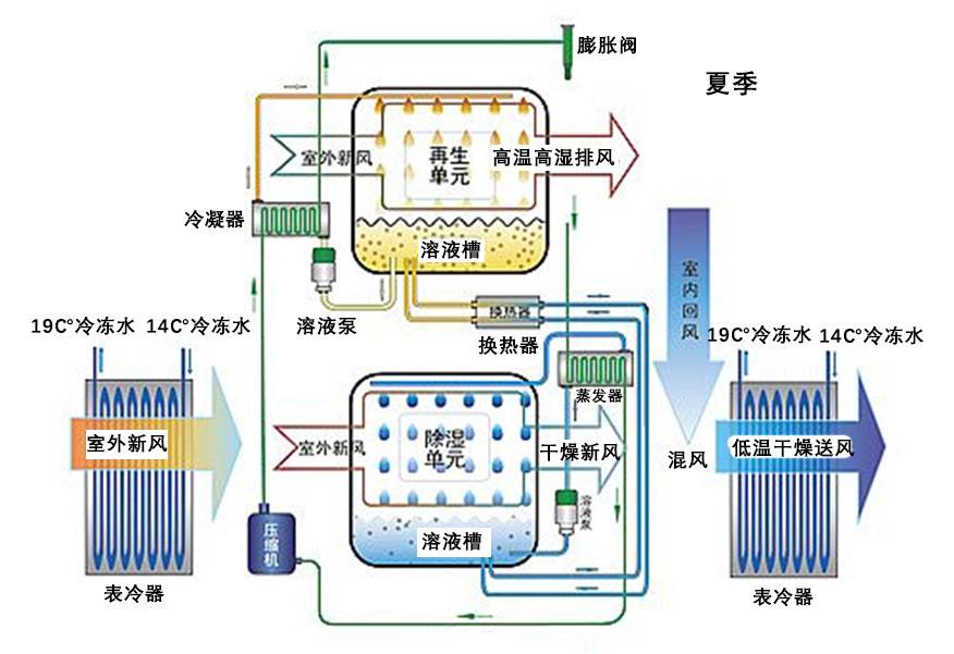 溶液除濕空調(diào)系統(tǒng)利用溶液直接處理空氣 ,在室內(nèi)風(fēng)機盤管中沒有冷凝水 ,因而避免了傳統(tǒng)空調(diào)系統(tǒng)中風(fēng)機盤管的凝水盤滋生細(xì)菌的問題。另外 , 常用的除濕鹽溶液 ,如氯化鋰、溴化鋰、氯化鈣等均具有殺滅細(xì)菌微生物等作用。已有測試表明 , 常溫下 3 mL 溴化鋰溶液能夠在 3 h 內(nèi)殺死 5 萬個XL 12blue 實驗細(xì)菌。氯化鋰溶液能殺死葡萄球菌、鏈球菌、肺炎桿菌、大腸桿菌、變形菌、綠膿桿菌、壞疽菌等 。實際系統(tǒng)中 ,病菌在鹽溶液停留的時間較長 ,為溶液的殺菌提供了條件。