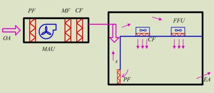 Fan Filter Units,中文意思為'風(fēng)機(jī)濾器單元(機(jī)組)'。也就是將風(fēng)機(jī)和過(guò)濾器(高效過(guò)濾器(HEPA)或超高效過(guò)濾器(ULPA))組合在一起構(gòu)成自身提供動(dòng)力的末端凈化設(shè)備。確切地說(shuō)是一種自帶動(dòng)力、具有過(guò)濾功效的模塊化的末端送風(fēng)裝置。風(fēng)機(jī)從FFU頂部將空氣吸入并經(jīng)HEPA過(guò)濾,過(guò)濾后的潔凈空氣在整個(gè)出風(fēng)面以0.45m/s±20%的風(fēng)速均勻送出。