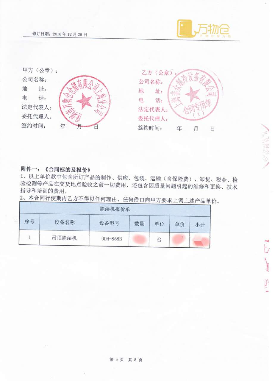 萬物倉公司的工作人員了解到我司的除濕設(shè)備來電咨詢,并提出了對于環(huán)境溫濕度的技術(shù)要求,我方銷售經(jīng)過專業(yè)評估進(jìn)行選型后,為客戶推薦了DDH-858B吊頂除濕機(jī)來用于倉儲車間,為以后的再度合作達(dá)成堅(jiān)韌的基礎(chǔ)。感謝萬物倉公司對眾有人的信任、眾有產(chǎn)品質(zhì)量的認(rèn)可,更期待我們的愉快合作!
