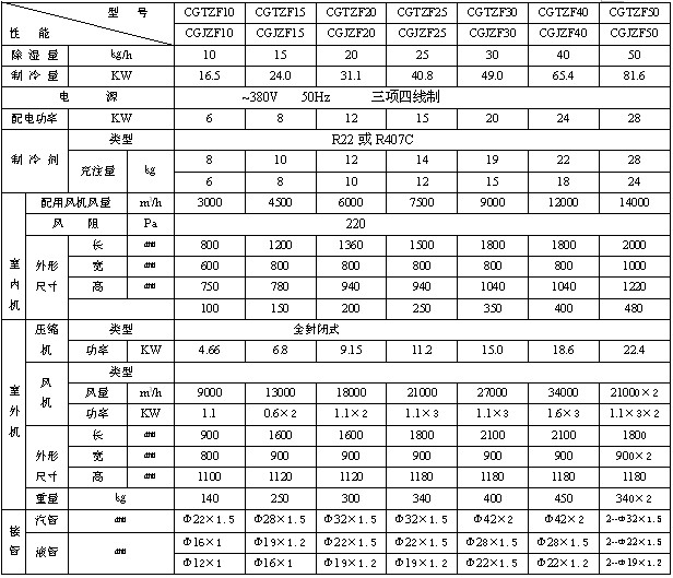 常規(guī)除濕機(jī)和管道除濕機(jī)均有升溫型、調(diào)溫型、降溫型三種功能類型,其中升溫除濕機(jī)主要用于除濕,無制冷功能,故適用于無溫度要求的除濕場所;調(diào)溫除濕機(jī)集除濕、制冷功能于一身,且制冷能力可調(diào),故特別適用于熱負(fù)荷變化較大的除濕場所。降溫除濕機(jī)在除濕的同時(shí)有制冷功能,但制冷能力不可調(diào),故適用于熱負(fù)荷較大,對(duì)相對(duì)濕度無要求的除濕場合。
