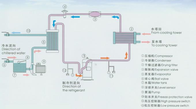 螺桿式中低溫冷水機組工作原理: