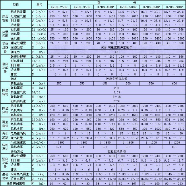KZHS-□玻璃合片室型轉(zhuǎn)輪除濕機組技術(shù)性能