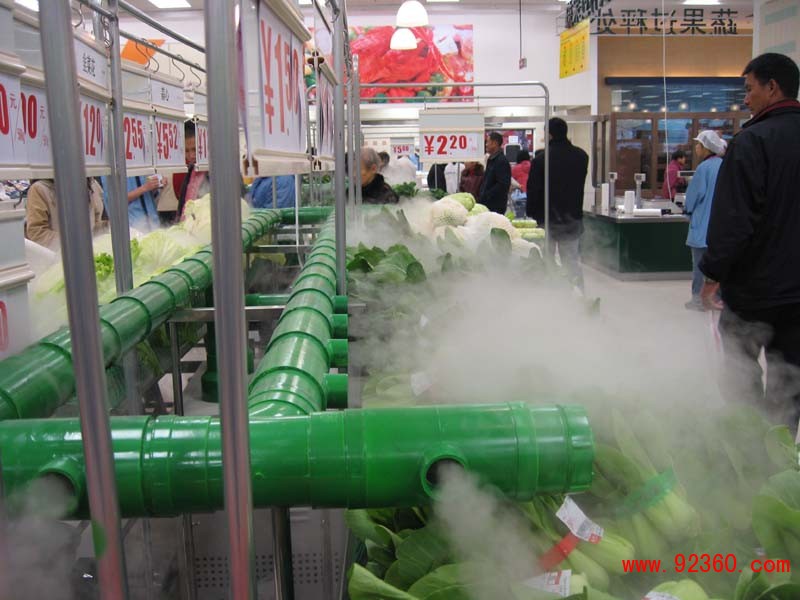案例:超市的蔬菜柜臺,在霧氣中浮現(xiàn)的蔬菜水果,看上去就像清晨剛從果園菜地里摘下來一樣新鮮。據(jù)介紹,這是超市為延長蔬菜水果的“壽命”而啟用的新式“武器”,其噴出的霧氣一來可以保持低溫,二來能均勻保持水分,三來整個區(qū)域降溫造景。超市的蔬菜水果賣場中,一些青菜水果常因水分蒸發(fā)變質(zhì),導(dǎo)致“賣相”不好。新引進的噴霧系統(tǒng)令不少顧客好奇不已,經(jīng)霧化的水汽可使空氣保持一定的濕度和低溫,使青菜水果常置于鮮嫩保質(zhì)之中。