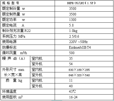BKFR-35/LW2防爆空調(diào)技術(shù)參數(shù)
